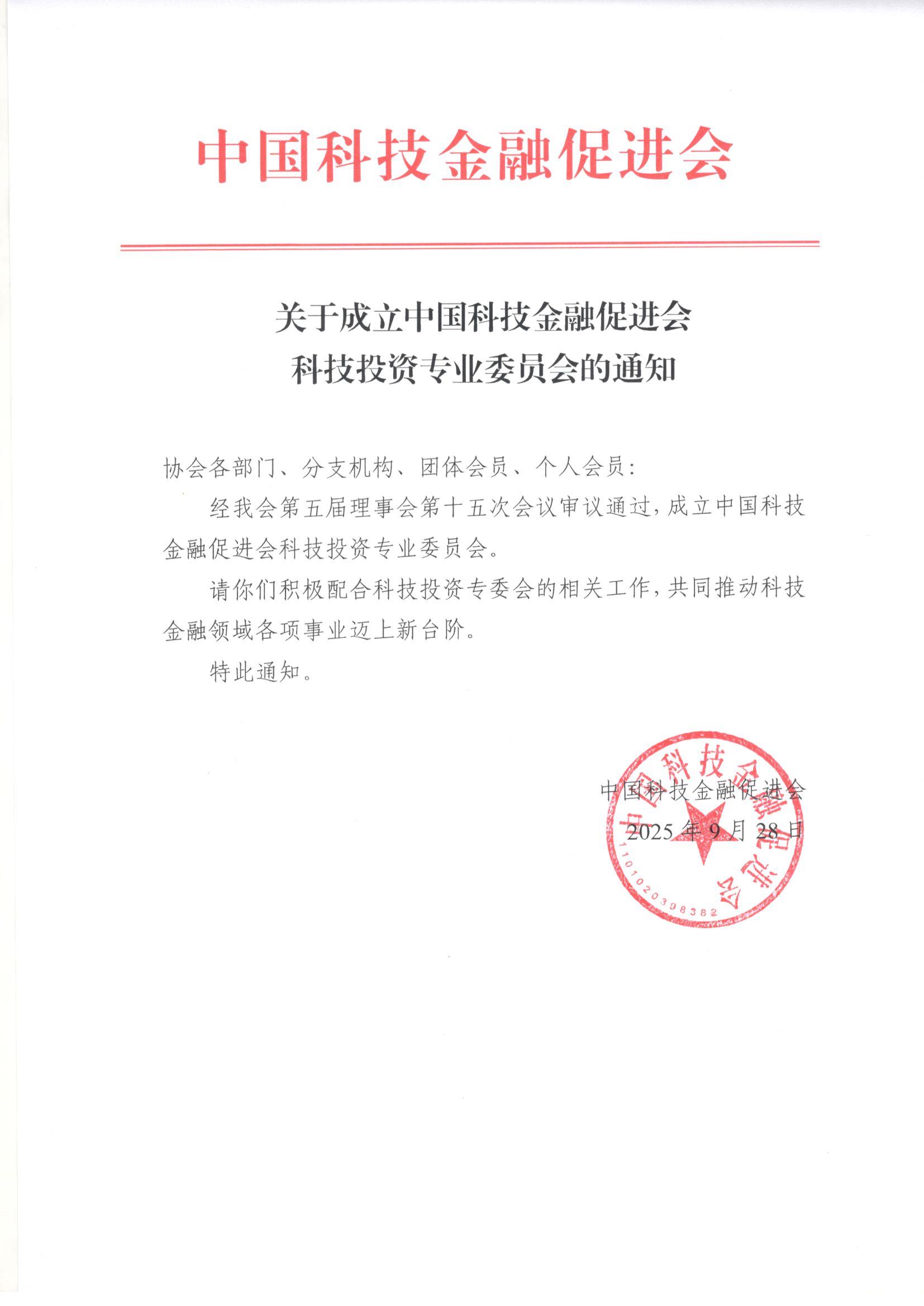 关于成立中国科技金融促进会科技投资专业委员会的通知